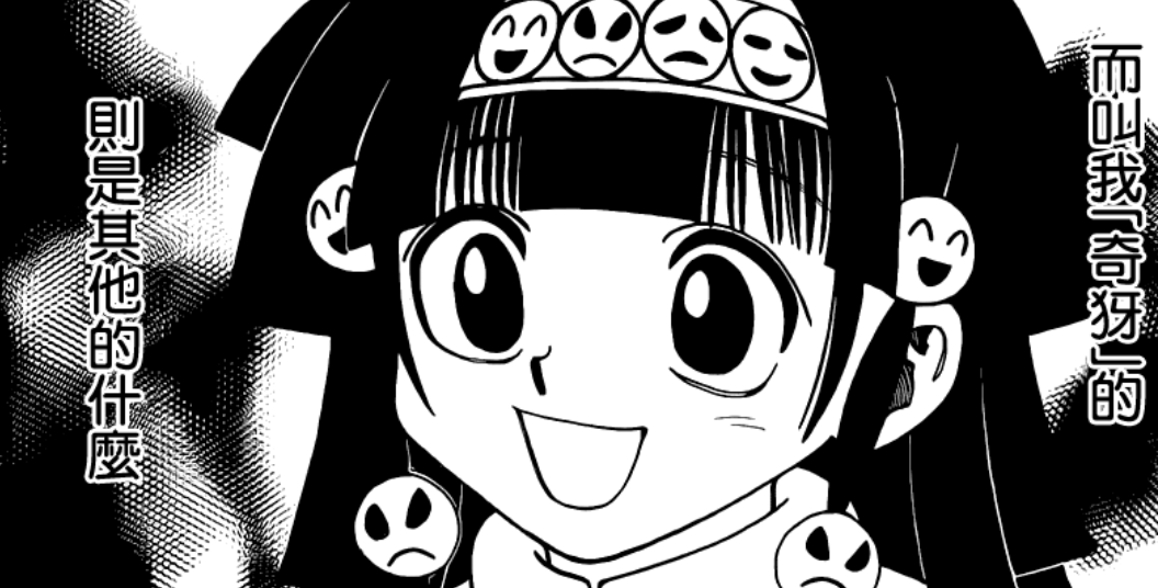 另外,奇犽可以使用“命令”让亚路嘉完成任何事而不用付出代价。发出请求的人若是不为自己而是他人,强求的代价也很低,甚至只有一两片指甲。