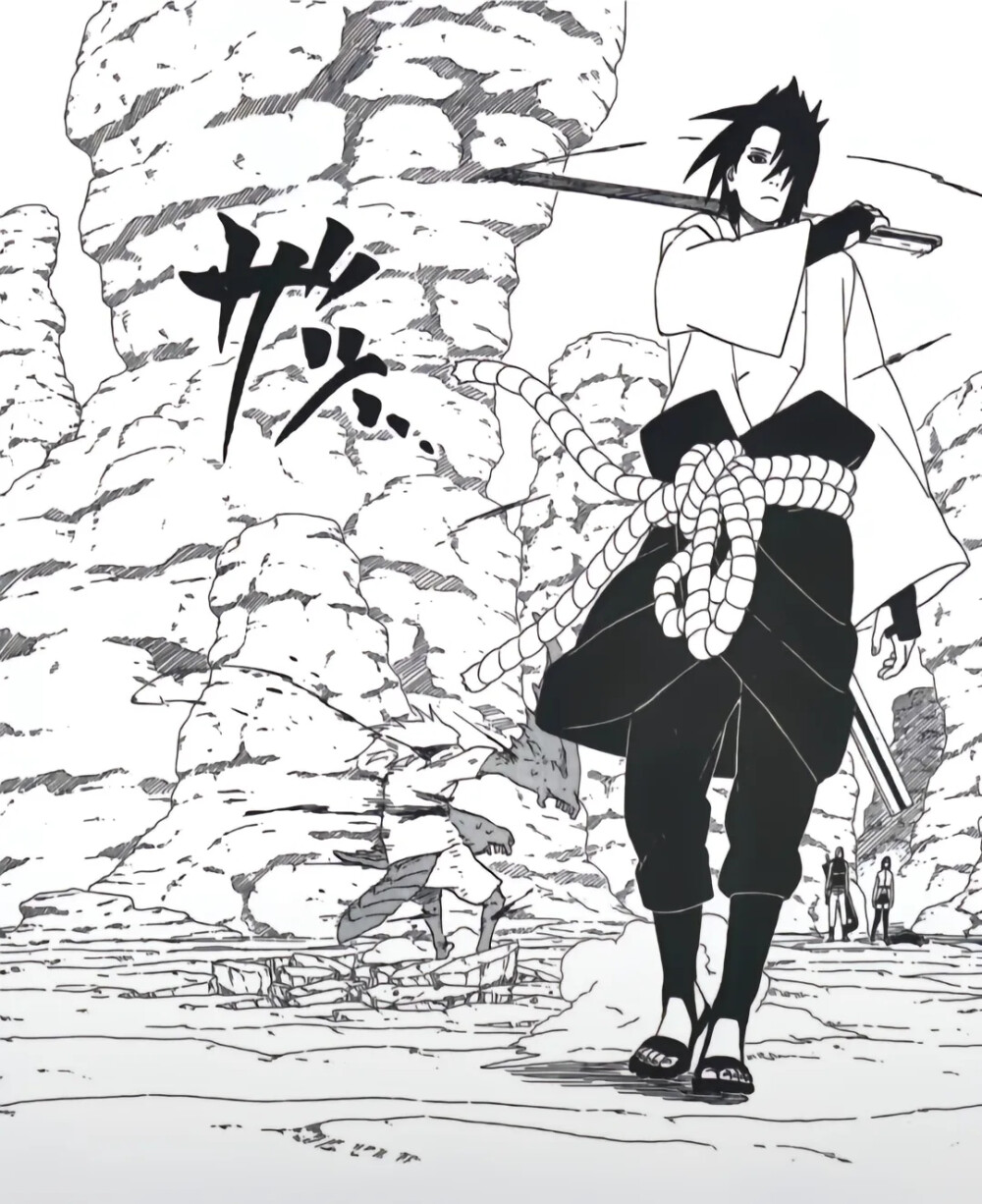 但事后从带土口中得知了鼬的灭族真相,悲痛万分下决定摧毁木叶,降临五影会谈并取得当初下令屠杀宇智波的木叶高层之一团藏的性命。第四次忍界大战中,佐助与秽土转生后的鼬相遇并协力打败药师兜,因为鼬的话而思想产生波动。