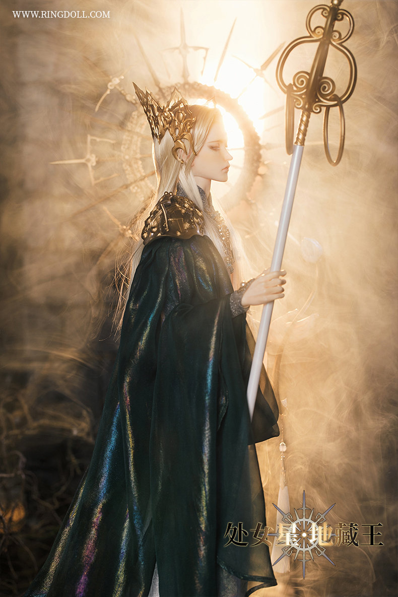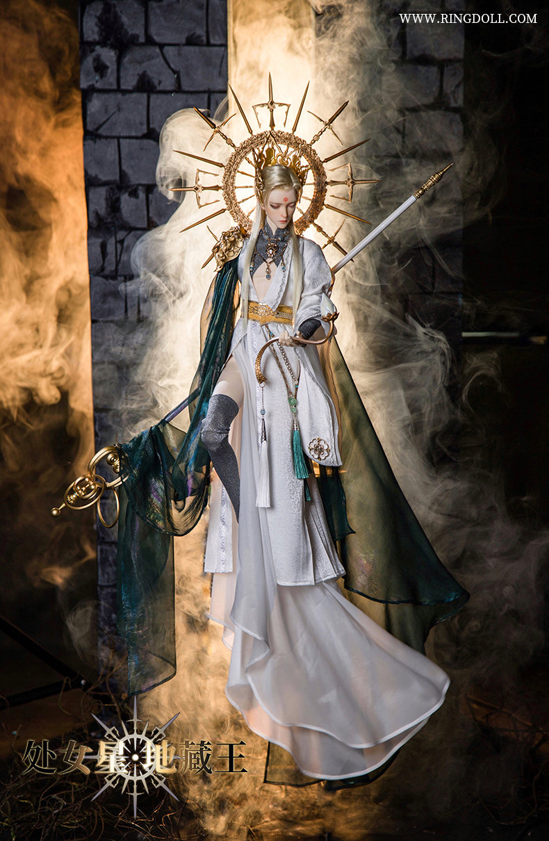 《地藏十轮经》中称其“安忍不动如大地,静虑深密如秘藏”。地藏菩萨受释迦牟尼佛嘱咐,在释迦既灭、弥勒未生之前,自誓必尽度六道众生,拯救诸苦,始愿成佛。其发有“众生度尽、方证菩提;地狱不空、誓不成佛”之大愿故被尊称为大愿地藏菩萨、幽冥教主。