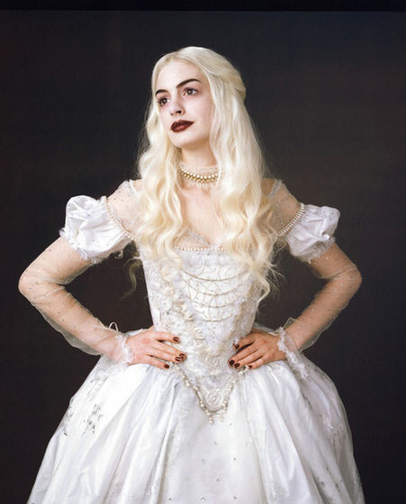 白发如雪,娇肤若霜,冷若冰霜的她本应是冰清玉洁,却偏偏爱涂上了黑色的唇膏,因此也印证了她是个“腹黑”的女王,所以尽管并不是出于完全的无私,但是当爱丽丝返回地下世界时,白棋女王还是将她置于自己的翅膀之下保护着她。