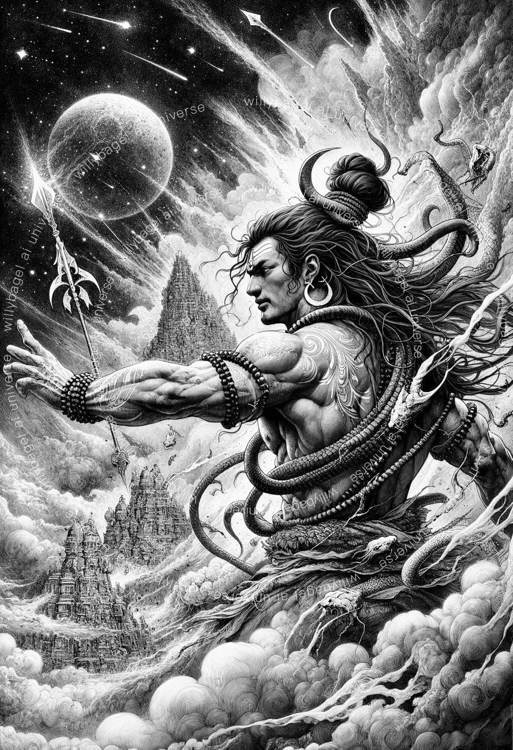 又称“大自在天”,是印度教三大主神之一,与梵天、毗湿奴并称三相神(Trimūrti)。湿婆源于印度河文明时期的瑜伽尊者和吠陀文明时期的楼陀罗,前者为原始湿婆,为印度本土达罗毗荼人血脉,后者具雅利安人血统。楼陀罗首见于《梨俱吠陀》,但地位卑微,在以后的《耶柔吠陀》和《阿达婆吠陀》中被加封为“兽主”。